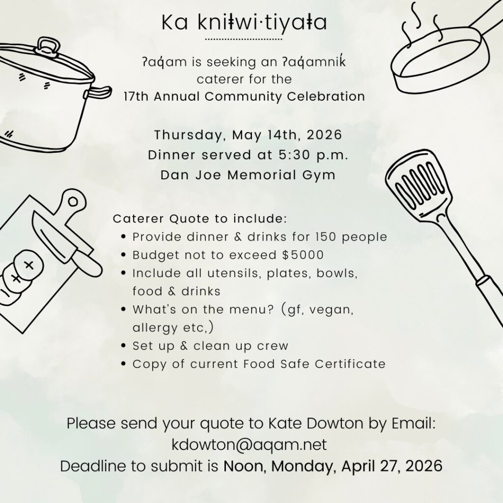 Join us Thursday, May 14, 2026, at 5:00 p.m. at the Dan Joe Memorial Gym for an evening of food, laughter, and celebration as we honour ʔaq̓amnik success.