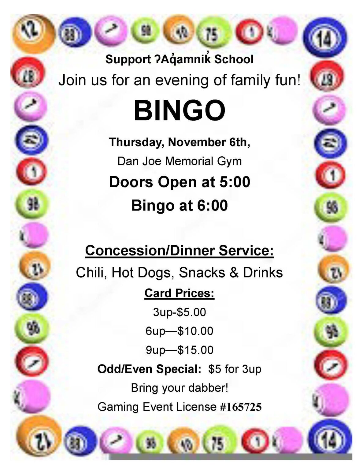Doors open at 5:00pm, Bingo at 6:00 pm