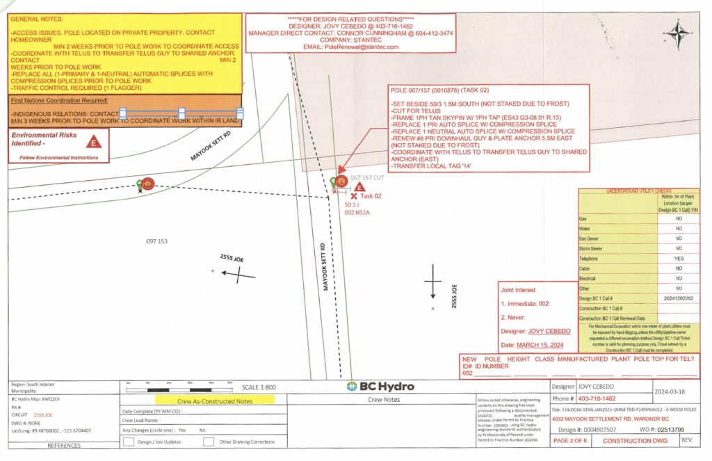 BC Hydro and Conquer are granted access to ʔaq̓am lands forming Cassymayooks 5 for the purposes of access to a power pole outside of ʔaq̓am lands for replacement. BC Hydro and Conquer will be on ʔaq̓am lands on February 12th, 2026.