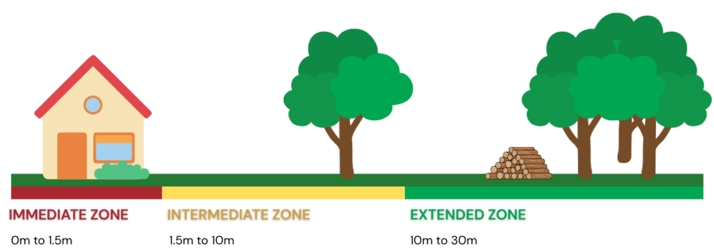 There are three zones a Wildfire Mitigation Specialist will assess in your home for susceptibility to wildfires: